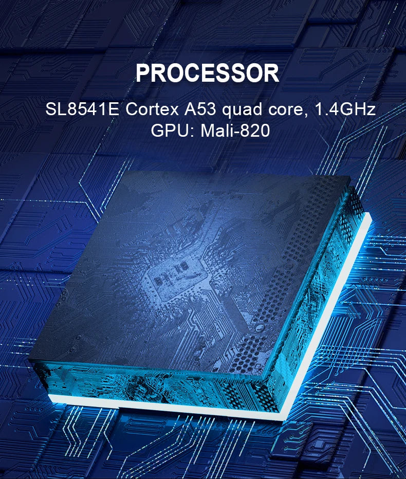 SL8541E Cortex A53 quad core, 1.4GHz;GPU: Mali-820 |