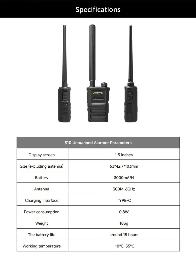 The built-in alarm system notifies you instantly of detected drone frequencies, ensuring timely awareness and response. Lightweight and portable, it’s easy to carry for field use or on-site monitoring. Whether for personal safety, corporate security, or public event protection, this advanced frequency detector offers reliable and efficient anti-drone monitoring in a handheld design.