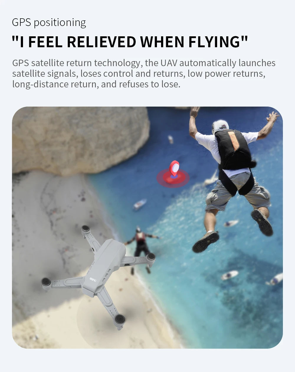 - GPS Assisted Flight. Provides you with accurate positioning details of your drone.The drone will automatically return to home precisely when its battery is low or the signal is weak when flying out of range, never worrying about losing the drone.