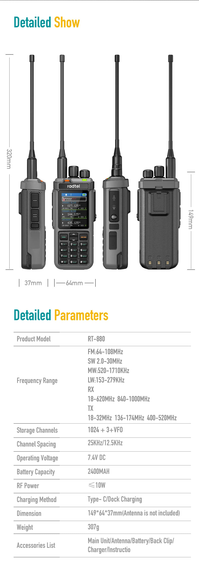 New Radtel RT-880G APRS+GPS 10w Full band Ham radio