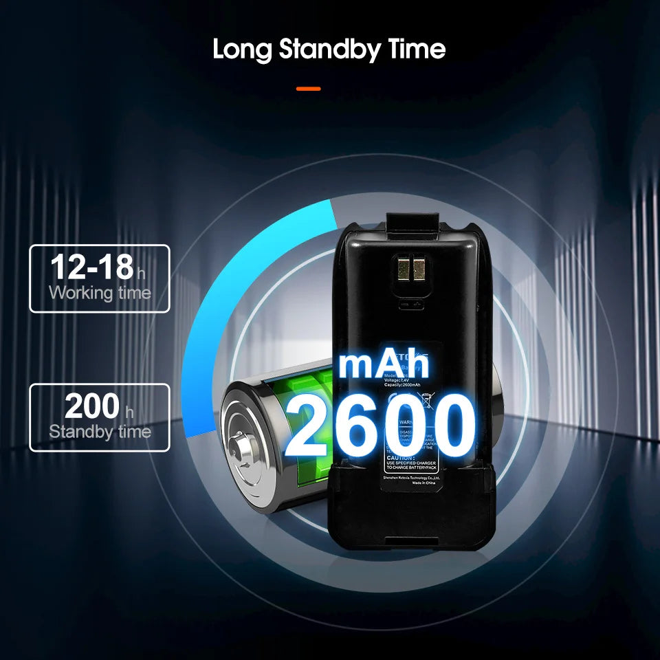 Equipped with a 2600mAh high-capacity lithium battery, the RT86 provides up to 12-18 hours of continuous use and up to 200 hours of standby time. Whether it's an outdoor adventure during the day or a busy workday, the RT86 ensures you stay connected at all times.