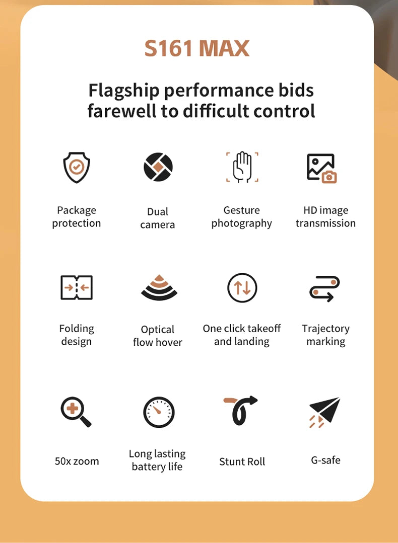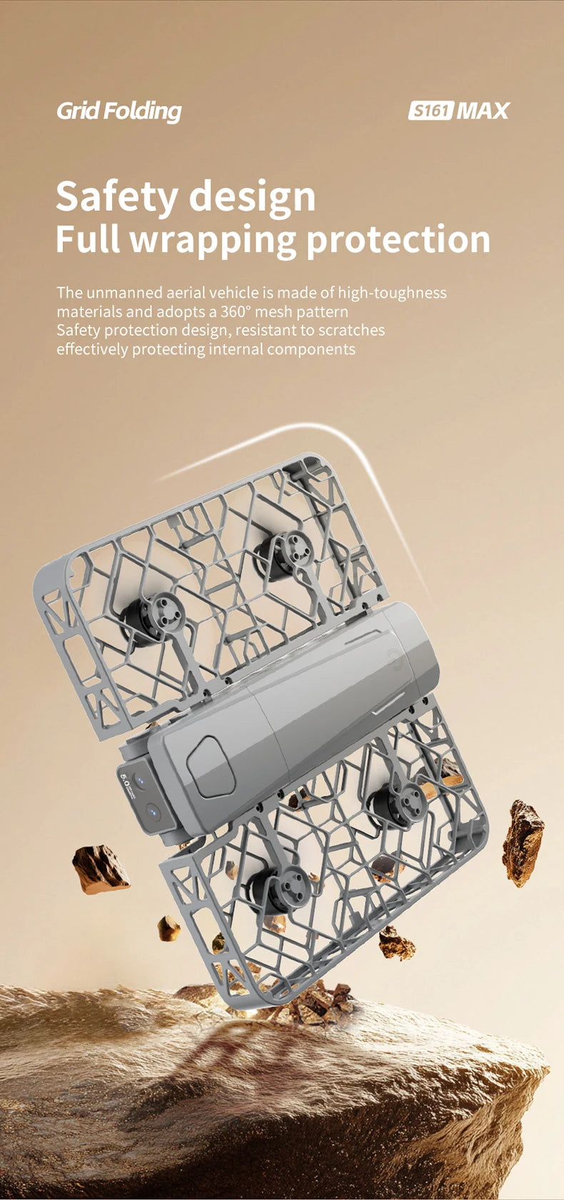 Its foldable design makes it lightweight and portable, ideal for outdoor adventures or travel. With intelligent flight modes like altitude hold, one-key return, and headless mode, flying becomes simple and fun. Whether you’re looking to practice drone piloting or capture unique perspectives, the S161 provides reliable performance and user-friendly operation in one sleek package.