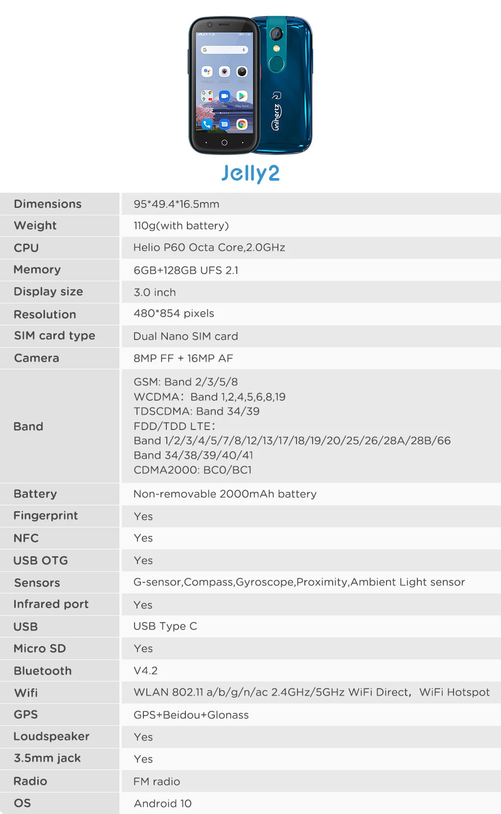 Unihertz Jelly 2 Specification